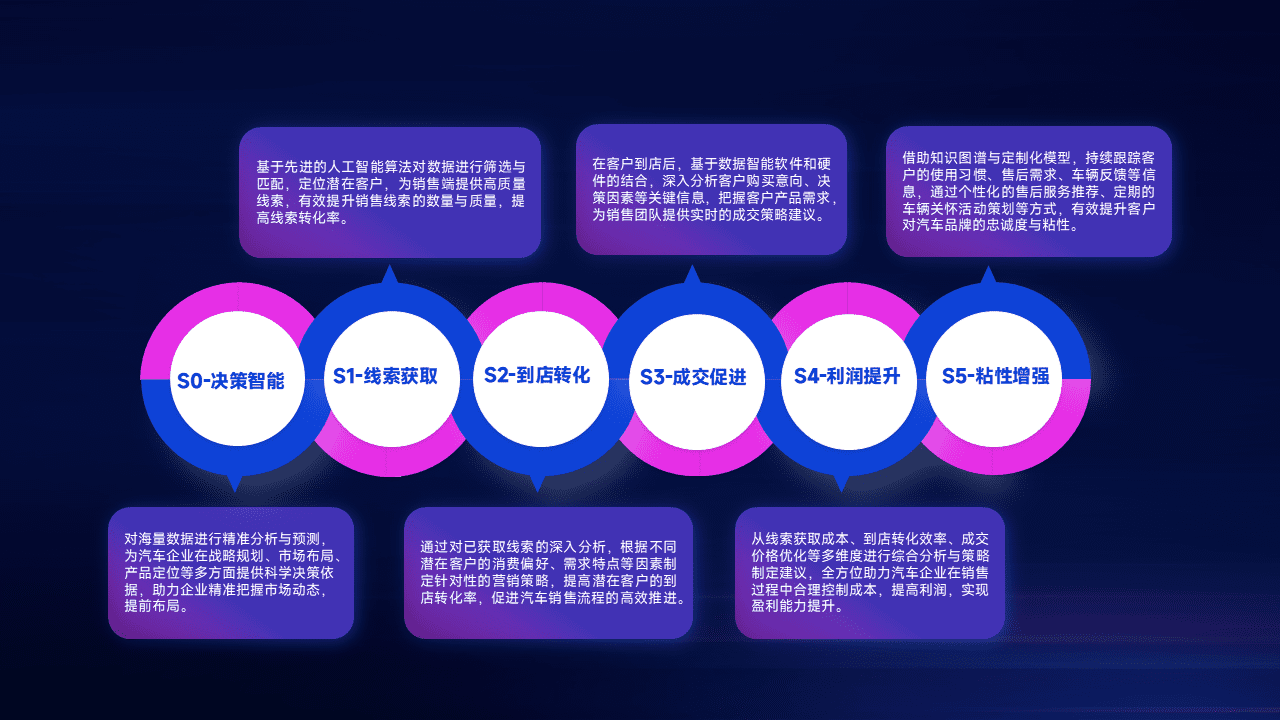 通过拓宽潜在客户来源、、、优化线索分配并提高到店转化率,,以增强销售效率。。同时,,,利用线索数据不断优化分析模型,,,有效提升转化率,,扩大营销影响力。。。。